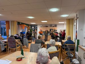 Pfarrerin Neubert besuchte uns mit dem Posaunenchor und stimmte die Weihnachtszeit musikalisch ein.